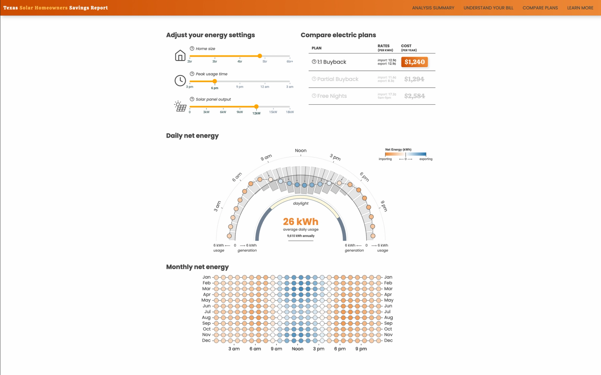Helping Texas solar homeowners navigate the deregulated and confusing energy market to find the best plan for their needs. An interactive web-based visualization project.