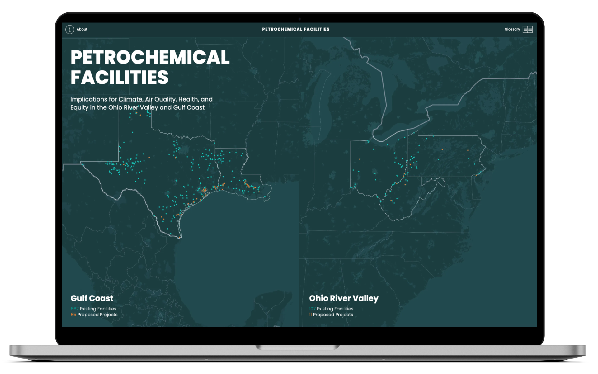 An in-depth exploration of nearly 1000 petrochemical facilities throughout the Gulf Coast and Ohio River Valley,