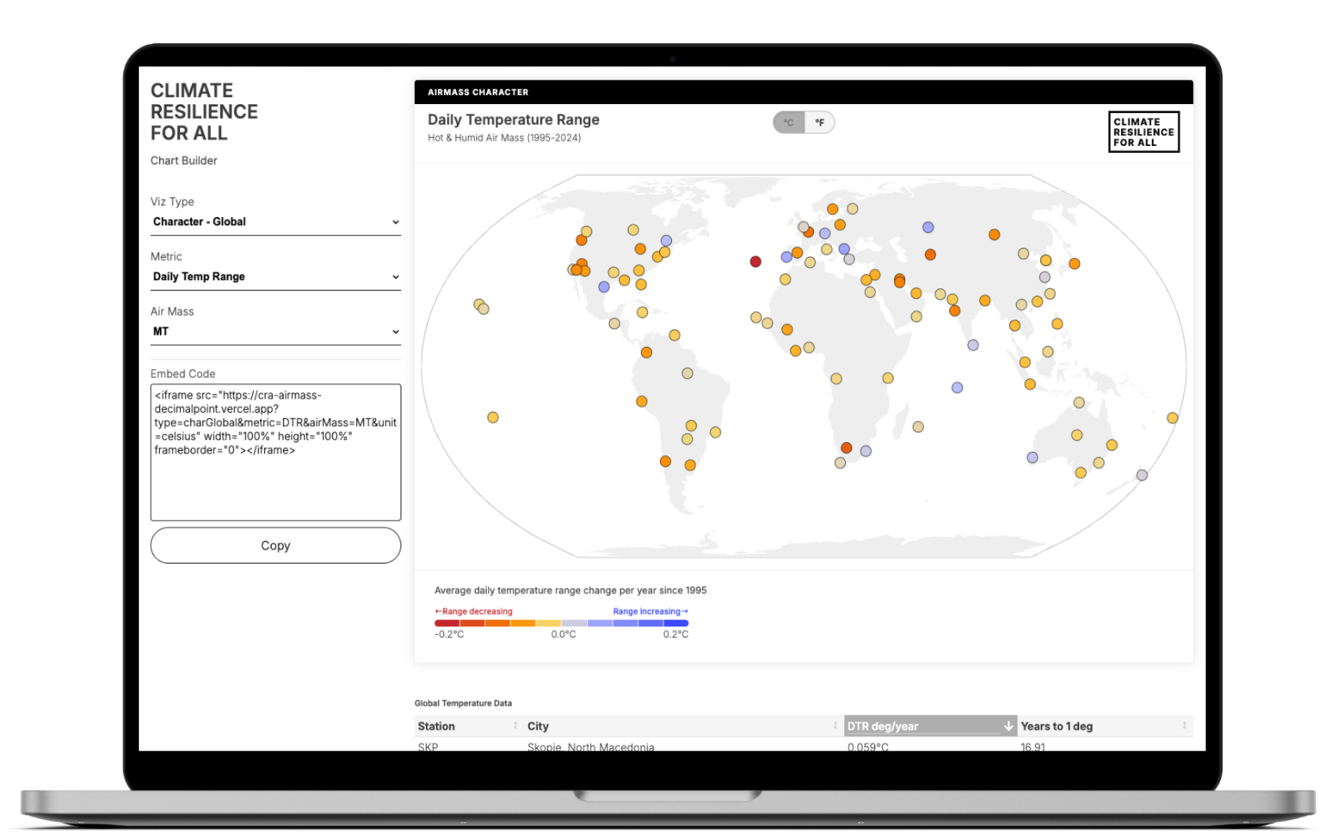 Customizable visualization tool for building embeddable graphics relating to change air mass data