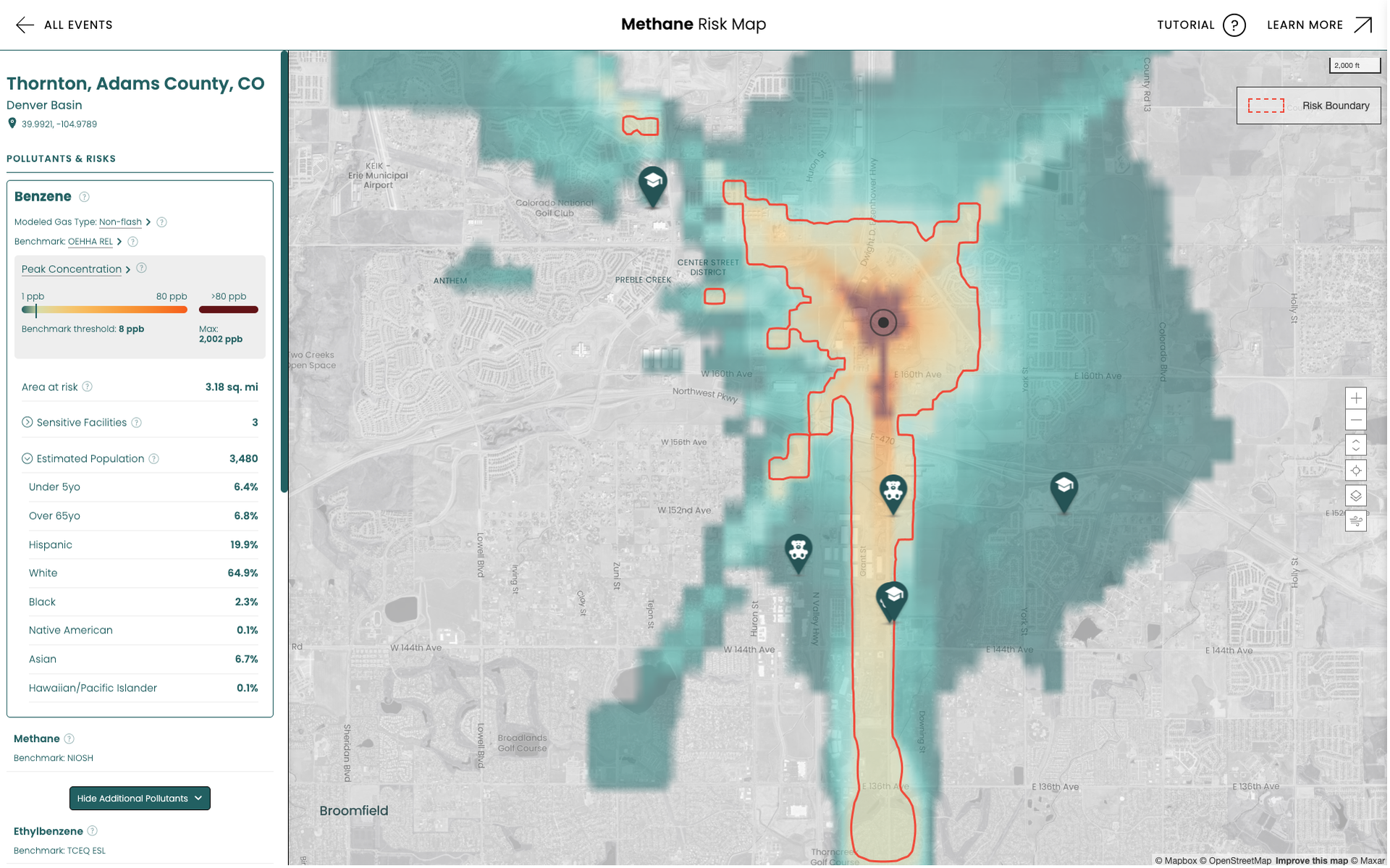 The Methane Risk Map offers a fresh look and unprecedented level of detail on (1000+ and growing) hazardous methane events, and the public health risks they pose to the communities around them.